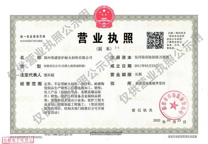 ©2021 鄭州榮盛窯爐耐火材料有限公司 版權所有 豫ICP備13012392號-2 營業執照公示